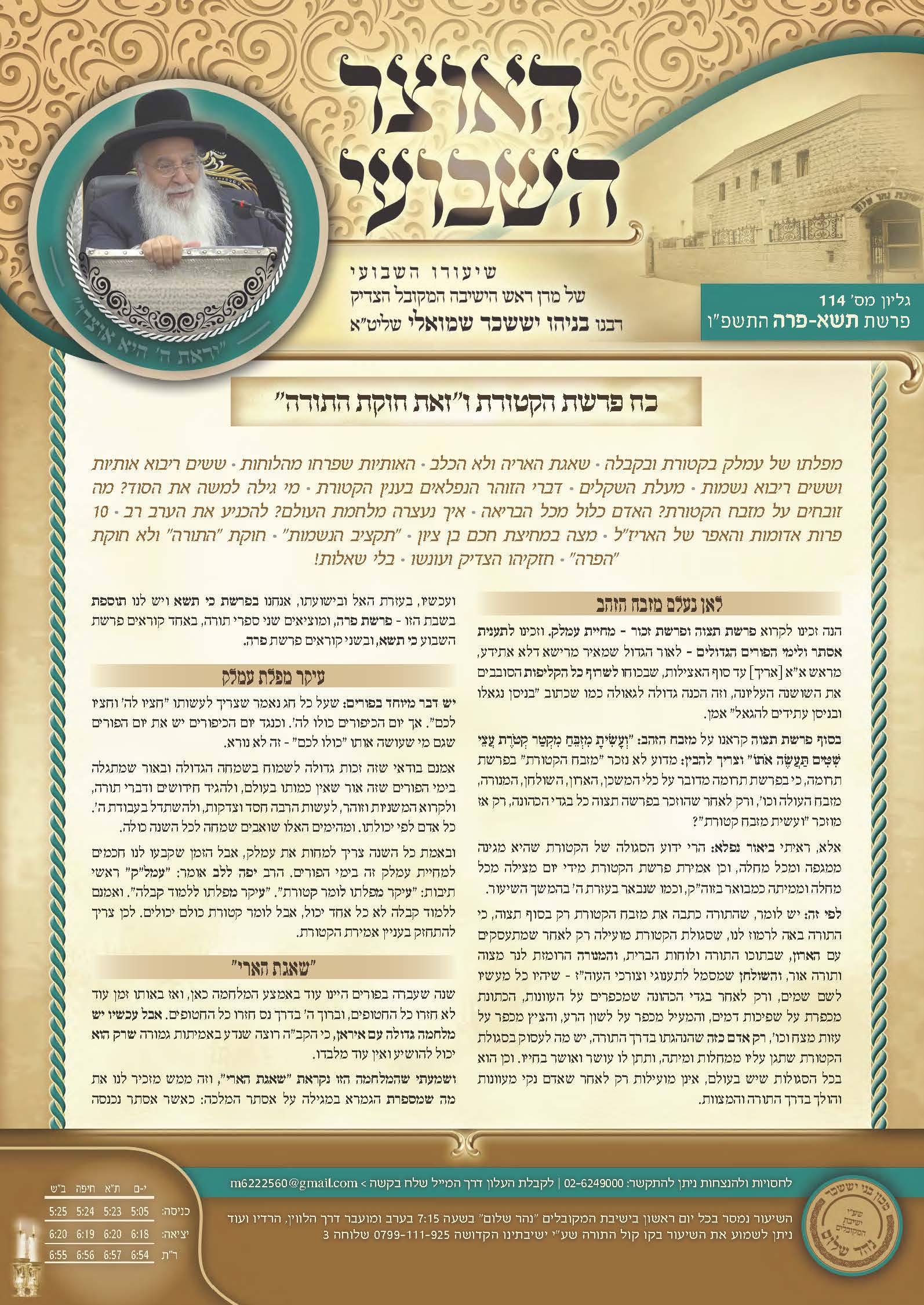 ה אדר תשפ"והשיעור השבועי